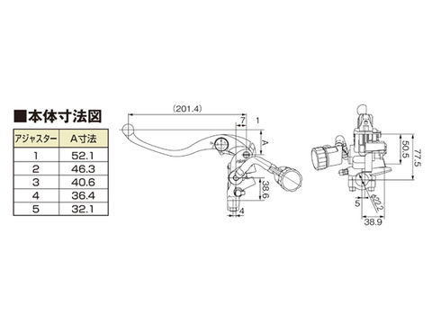 ※GSX-1300Rハヤブサ(99~08年)、バンディット1250S(07年~)などはハンドルを切った際にマスターが車体の一部(カウルなど)に接触するため取付不可。※シリコン系DOT5(BF5)ブレーキフルードは使用しないでください。※スクーター等の左側ブレーキマスターシリンダーとしては使用できません。※スイッチ固定のネジには緩み防止にネジロック剤が塗布されています。取り外しには十分ご注意ください。本体色:ゴールドレバー色:ブラックピストンを縦型にすることでレバーレシオを大きくとり油圧レシオを小さく設定することで入力ロスの低減を図りクラッチのコントロール性を向上!ボディは鋳造仕様にすることで大幅なコストダウンを図りリーズナブルな価格に設定。ピストン径φ19は横型14mm相当に設定。φ19は横型マスター14mmと互換性があります。※他サイズへの使用は不可。レバーアジャストは5段階調整可能。安心のブレーキスイッチ、リザーバータンク、アルミタンクステー付。バンジョーボルト(M10×P1.25)は別売り。φ22.2ハンドル用。バンジョーボルトの取付位置が下側のため、クラッチホースの交換が必要になる場合があります。装着前に必ずご確認ください。※装着前には本体寸法図を参考に十分なスペースを確保できるか必ずご確認ください。ブレーキフルードについてブレーキフルードは長期間の使用により、空気中の水分を吸収し劣化します。(※保管状態でもフルードの劣化は進みます。)ブレーキフルード内の水分が多くなるとブレーキング時の熱で沸騰しやすくなったり、油圧システム内の部品を錆びさせ、ブレーキまたはクラッチの性能低下や予期せぬトラブルを生じる可能性があります。通常使用で2年毎の定期交換が必要です。著しく劣化が見られる場合は、ブレーキフルードの早期交換が必要となります。