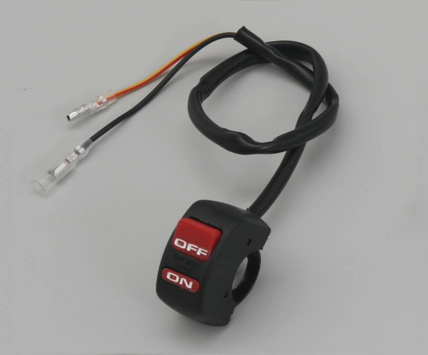 OFF時に導通、ON時に遮断させるキルスイッチ。ハンドルクランプタイプで、自作したハンドル回りにすっきり取付可能。スイッチ部、ボディ部ともに樹脂製。Φ22.2ハンドル用。ボディ:45mm×21mmハーネス長:400mm※完全防水ではありません。