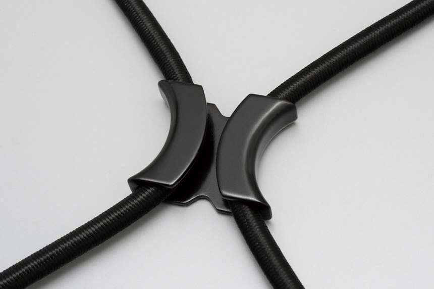 自由度抜群。長さ調整式フック採用荷物の量に合わせてコードの長さが調節可能。シンプルな調節機構で荷物の押さえ加減調整も簡単に行なえます。余ったコードはスマートに処理ミニフック付きのコードエンド採用で、余ったコードもスマートに処理できます。※Xジョインター1個付き。【X(エックス)ジョインター】※エックスタイプのみエックスタイプには便利なXエックスジョインターが付属。Xエックスジョインターからコードを取り外せば、2本別々にも使用可能で自由度倍増。また、エックス形状にすることで、ゴムコードへの負担も軽減。