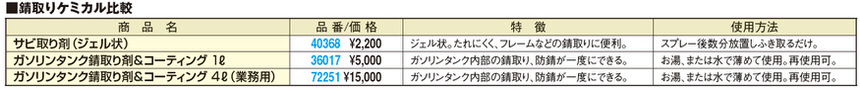 ガソリンタンクの錆取り&コーティングができる旧車レストアに最適。1液式でタンクの錆だけに反応して強力分解。処理後はタンク内側をコーティングします。酸を使わないため、錆以外の金属面やパッキン類、そして塗装面を傷めません。処理液は使い捨てではなく何度か使用できる。原液をおおむね5~10倍に薄めて使用。お湯を使えば錆取り反応がさらに促進されます。