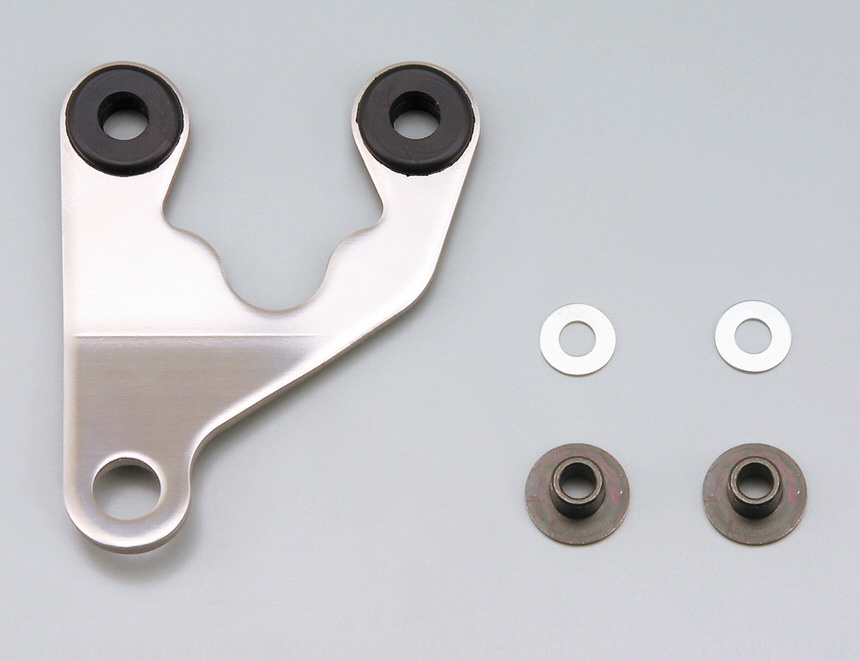デイトナ社デンスピやデンタコなど、デリケートな電気式メーター取付時の必需品。3mm厚のステンレスミガキ材に防振ラバーを組み込みました。メーター取付ピッチ45mm。M10ボルト(付属なし)にて取り付け。寸法図を見て、車両に合った形状のステーをお選びください。OPTIONフリーブラケット(63531)と組み合わせれば、取付自由度がさらに広がります。・汎用品につき、メーター取付ピッチ、メーター底面形状(特に配線取出口)を必ずご確認のうえ、対応する商品をお選びください。・メーター底面にビスの頭がある場合は、完全にフラットの状態では取り付けることができません。必要に応じてカラーやワッシャーなどをご用意いただき、調整してください。
