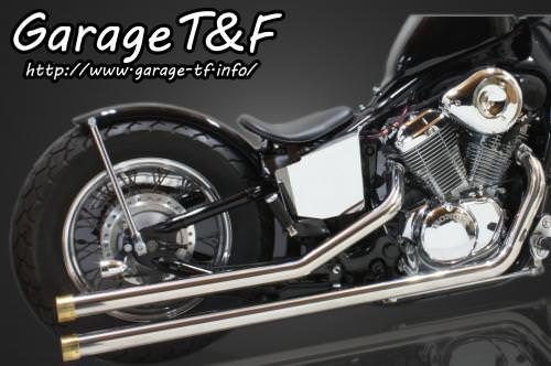 ロングドラッグパイプマフラー(ステンレス)マフラーエンド付き(真鍮) ガレージT&F スティード400(STEED)