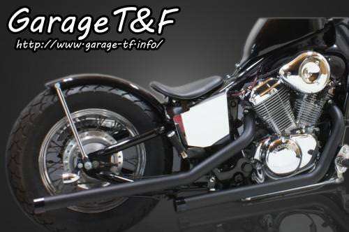 ドラッグパイプマフラー(ブラック)マフラーエンド付き(アルミ/ブラック) ガレージT&F スティード400(STEED)