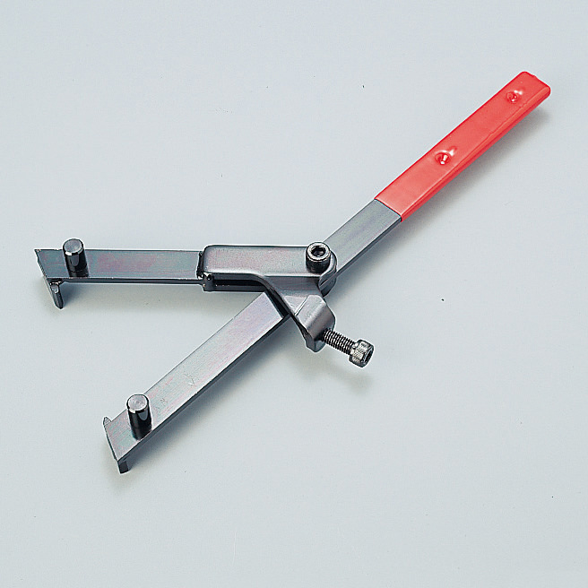 ホンダ系スクーターのプーリー(歯車タイプのドライブフェイス)と、クラッチアウターの脱着が可能なシザースタイプのホルダー。バンドホルダータイプの脱着工具でホンダ系スクーターの歯車タイプのドライブフェイスを外そうとすると、樹脂コートのバンド部がすぐボロボロになってしまいますが、この脱着ホルダーなら大丈夫。ピンピッチ25~150mm、ツメピッチ最大135mm。※専用工具につき、ホンダ車以外は不可。【参考適合車種】ホンダ:Dio系(2サイクル車のみ)、タクト、NEWリード50 など