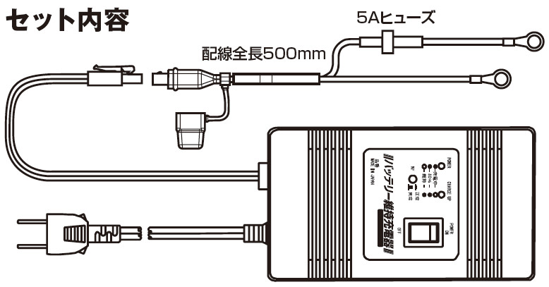 冬期等、長期にわたり車両を使用しない場合、バイクのバッテリーにつなぎ維持(微弱)充電を行なうことにより一発始動が可能。【カプラーオンで簡単充電タイプ】MF(メンテナンスフリー)、液補充タイプともに使用可能。ー通常行なっている急速充電はバッテリーへの対攻撃性が強いため、バッテリー寿命を極端に縮めることになります。(機能)●家庭用電源(100V)でOKです。●充電の進行状況をLEDランプにてお知らせします。●バ ッテリーの自己放電を補いながら、常に最適な電池容量を維持できます。●充電可能なバッテリー容量=12V 2.3~28AH。バッテリーが満充電になると充電を自動停止します。バッテリーの劣化等の理由で満充電されない場合は安全確保のため、一定時間が経過すると自動停止します。※車載状態でバッテリーを充電する際には、電装系への影響が出る場合があります。必ず、車両の取扱説明書、サービスデーター等で確認のうえ、使用してください。(車両のバッテリー端子を全て外すなどしてください。)適合バッテリー二輪車用ベントおよびシール電池小型シール鉛電池