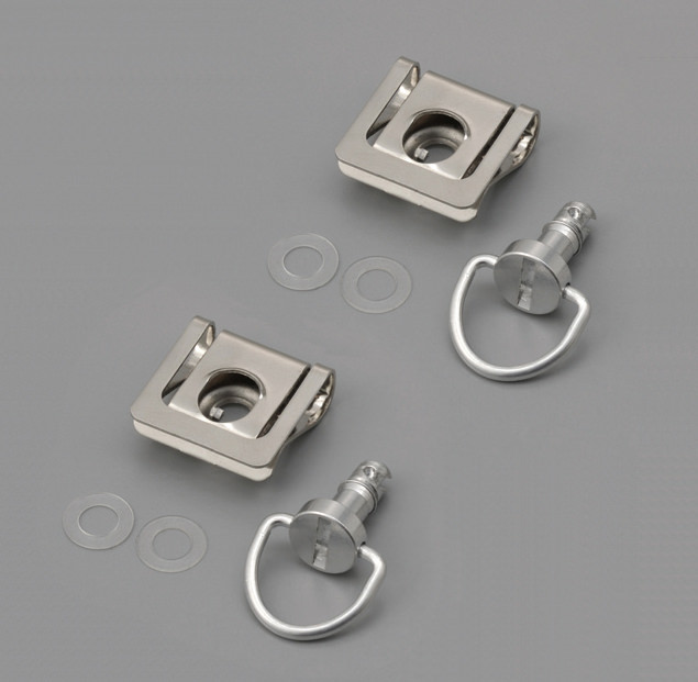 カウルなどの取り付け取り外しに便利なクイックファスナー。リングハンドルタイプで工具が無くても使用できます。工具を必要とせず、1/4回転で着脱が可能。対応板厚(下板0.7~3.2mm、上板+下板=4.2~5.1mm)●締め付け強度が必要な箇所には使用しないでください。対応板厚範囲内でご使用ください。利用する下穴位置を確認してください。