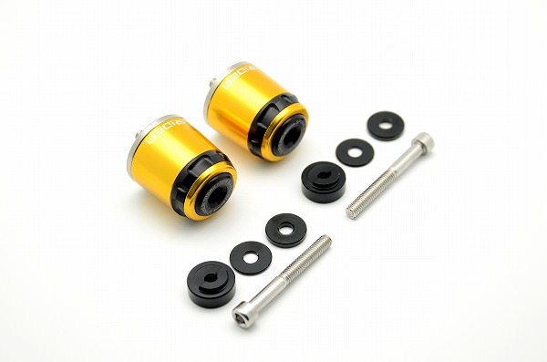 ※カラー:ゴールド※取り付け写真はイメージです、商品のカラーと異なる場合もあります。 ※モニターの環境等の理由により画像の色と実物の色が若干異なって見える場合がございます。※この商品は予告なしに価格や仕様を変更する場合がございます。重量(片側):140gステンレスウェイトを内蔵した防振タイプのバーエンドです。重量のあるステンレスウェイトにより振動抑制効果を発揮し、運転時の不快な振動を抑えます。回転構造により、万が一の転倒時に衝撃を軽減します。転倒時等に破損する可能性があるアルミカバーとPOMカバーは単品で購入することが出来ます。アルミカバーは高強度アルミニウム合金素材(A6061-T6)削り出しを使用し、表面の変色や腐食を防ぎ耐摩耗性も向上させるアルマイト仕上げで美しい外観を長く保ちます。ステンレスボルト付属。
