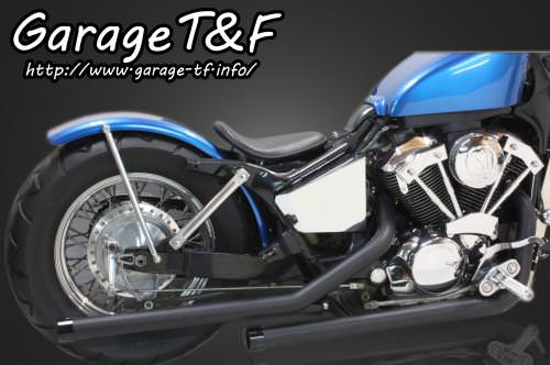 ドラッグパイプマフラー(ブラック)マフラーエンド付き(アルミ/ブラック) ガレージT&F シャドウ400(SHADOW)