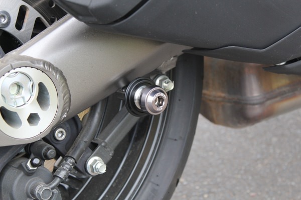 機能性とデザイン性を備えたスタンドフックです。万が一の転倒時にスイングアームへのダメージを和らげてくれます。アルミ部分は高強度アルミニウム合金素材(A6061-T6)削り出しを使用し、表面の変色や腐食を防ぎ耐摩耗性も向上させるアルマイト仕上げで美しい外観を長く保ちます。ステンレスボルト付属。