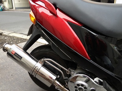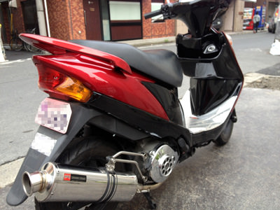 音質と音量にこだわったアドレスv125用 パワーサイレントマフラー。昨今の住宅事情を考慮し、音量は小さめにセッティングし、音質にこだわりぬいたアドレスv125用のマフラーです。音質、音量にこだわった結果、スポーツマフラーに多い下のトルクを犠牲にし、中速~高速だけを伸ばすのではなく、下のトルクを残した上で、高回転時のトルクを伸ばすことに成功しています。平成13年度の騒音規制90dBにも対応しています。近接騒音排気音の測定値は87dB【A】/3750rpm。特にアイドリングの音は静かで、自宅前でエンジンをかけて、出かけていくときにも近所に気を使う必要がありません。もともと出だしの早さには定評があり、通勤快速と評されるアドレスv125が、中速~高速の伸びが出るようになったので、より元気に走るようになりました。アドレスv125の純正マフラー用のO2センサー用純正配線は少し短いため、O2センサーを延長する配線を付属しました。また、アドレスv125のマフラーの取り付けは年式によって、ボルトの径が違うため、8ミリと、10ミリのボルトの両方を付属いたします。エキゾーストガスケットは付属しておりません。純正品を別途ご購入ください。サイレンサージョイント部にスプリングを使用しております。スプリングフック等の専用工具をご用意頂くとスムーズに装着できます。
