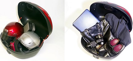 容量は43リッターサイズです。サイズにもよりますが、フルフェイス二個が収まるサイズです。
