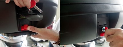 キャリアへのベースの固定も30リッターのリアボックス同様、緩みにくいナイロンのセルフロックナットを使用しています。