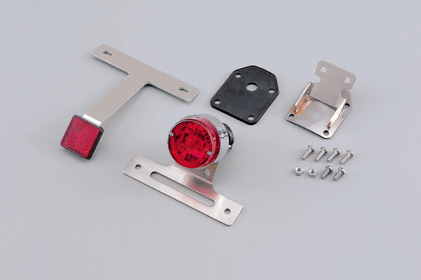 丸形の小型ムーニーテールランプ(41907)をすっきり取り付け。テールランプベースは純正リアフェンダーのR形状に合わせた専用品。車体への取り付けはラバーマウントで振動に強い。車検対応の型式認定リフレクターキット付属。ラ ンプ補修部品はムーニーテール(41907)と同じ。
