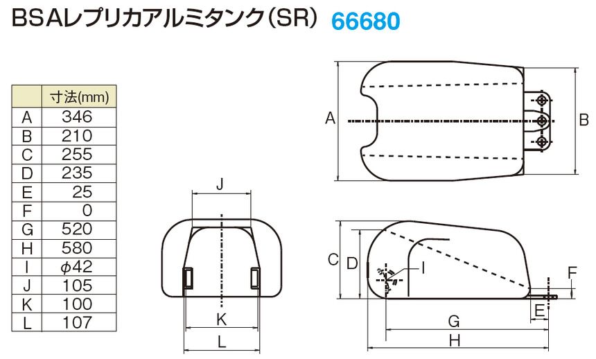 BSAレプリカアルミタンク アルミ製バフ仕上げ DAYTONA(デイトナ) SR400・SR500(80〜08年)