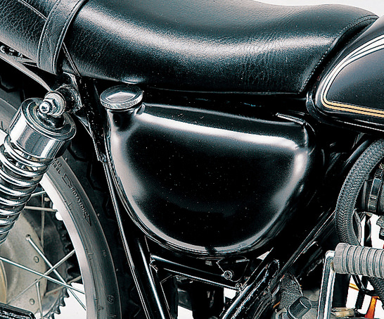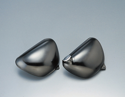 ※SR400(10年 FI)不可。ビンテージ系のカスタムには欠かせないオイルタンク風サイドカバー。塗装ベースに最適なFRP製黒ゲルコート。左右1セット。左側サイドカバーの純正キーは使用できなくなります。ゲルコートは仕上げ塗装を前提とした素材の下地処理で、塗装ではありません。