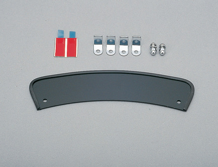 クラシカルなモデルにベストマッチな風切りネームプレート。一般的な風切りと違い、面倒なフェンダー穴開け加工は一切不要。付属の強力両面テープでフロントフェンダーのお好きな位置に貼り付けるだけだから簡単&ラクラク装着。プレート本体スチール製表面ブラック仕上げ。フチ取りラバーモール、取付用ボルト類付属。接着する際はガスケットリムーバー等を使い、必ず接着面の汚れや油分をよく落としてください。