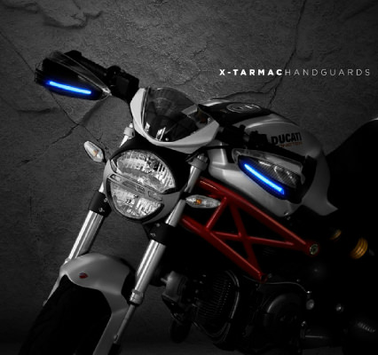 風雨から拳を守りELライト内蔵で視認性に優れたハンドガード風雨や、飛石から拳を守ります。ハンドガードに内蔵されたブルーに輝くELライトが愛車の存在感を際立たせるカーボン柄のハンドガード。脱着式エクステンションスポイラー装備。汎用タイプでバーエンド貫通式で内径13.6mm~19mmのものに取付可能。外側のクリア部分は取り外し可能。付属品:マウントKIT対応ハンドル内径:13.6mm~19mm バーエンド貫通タイプ対応レース専用パーツです。公道での使用はしないでください。