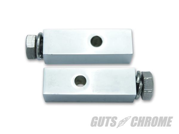 クロームメッキ仕上げのフットペグマウントブロックです。フットペグやハイウェイペグ、タンデムステップなど、汎用プットペグの取り付けに使えるブロックです。【寸法】本体全長:約51mm幅:約11mmマウントボルトサイズ:3/8-16ペグ取り付けボルト穴径:1/4