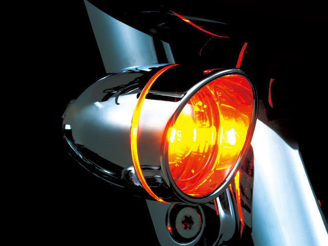 オレンジバルブ付待望のベゼルタイプが新登場。純正ウインカーは気に入っているが、もう少し変化が欲しいと言う声にお応えしたベゼルタイプのウインカーレンズキット。サイドから溢れ出す光が高級感のみならず視認性の向上にも貢献。デザイン性と実用性を兼ね備えています。00年~純正ブレットターンシグナル装着車にスナップオンで取付可能。2枚1セットでの販売となりますので、1台分には2セットお買い求めください。※XR1200/X、V-RODファミリー不可