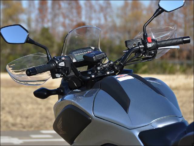 走行風よりライダーの拳や指先を保護するナックルガード。シールド本体はポリカーボネイト製で、色はクリアとスモークから選択できます。十分な強度をもたせた取付けステーは高い風圧を受けてもガタツキが出ないように考慮された形状を持ち、左右のミラーに共締めするだけのボルトオン設計です。※純正オプションのロングタイプスクリーンとの同時装着は未確認となります。※DCT仕様車専用品となります。※TypeLDにも装着可。本品のスクリーンカラー:クリア