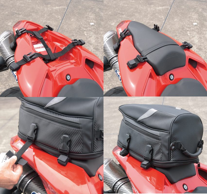 ※バイクのシート巾が装着するシートバッグの巾より広い(長い)場合は使用できません。全ての装着用ベルトやゴムベルト・バンジーコード等は、休憩時等必ず緩みやズレがないか確認し締直しが必要です。※またフェンダーやシートの保護のため、プロテクションフィルム等であらかじめ車体の保護対策を行ってください。スーパースポーツ系バイクへのシートバッグ装着ならコレスーパースポーツ系バイクへのシートバッグの取付をカンタンにするサポートベルト。SS系などのタンデムシートが小さくセパレートタイプのバイクに有効です。