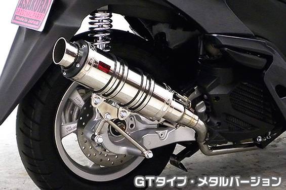 ■受注生産商品となっており、商品手配後 2週間程度入荷にお時間を頂きます。■※平成22年4月1日より施行された認証制度に適合する認証マフラーではありません。ご理解の程よろしくお願い致します。新時代から導き出された究極のイノベーションデザインで非常にインパクトあるマフラーです。メタルバージョンはステンレスをバフ磨きでピカピカに仕上げています。ブラックアルマイト処理を施したビレットタイプのテールマウントに、シンプルかつレーシーなイメージの【GTタイプ】。消音用のバッフルが2個装備されている【ダブルバッフル仕様】となっており、バッフル無し、バッフル1個装着、バッフル2個装着と3種類の排気音を選べるサウンドセレクトスタイルになっています。バッフルはステンレスタイプとアルミタイプの2種類のバッフルが装備されています。音量はバッフル2個装着時の排気音量が約85db(法定規制値内音量)、バッフル1個装着時の排気音量が約87db、バッフル非装着時の排気音量が約89db です。音質も耳障りな音でなく重低音のサウンドになっていますので、ノーマルマフラーではちょっと物足りない方にオススメです。サイレンサーはストレート構造ではなく隔壁構造になっていますので、音量は静かめに抑えられており近所迷惑になる事無く安心して走行できます。低中速を落とすことなく高回転でスムーズに回り扱いやすい設定になっています。振動防止のためサイレンサーとエキパイが2分割となる安心設計になっています。サイレンサーは、2点止めになっていますのでしっかりと固定でき、耐久性にも優れています。無加工ボルトオンにて装着できますので、必要な工具があれば簡単に取り付けできます。(取り付けに必要なボルト類は全て付属しております。)サイレンサーバンドにはスリットタイプを採用してデザインにもこだわっています。サイレンサーの固定にはサイレンサーバンドを採用し、バフ仕上げを施したステンレス製丸棒で組んだステーを介して固定しておりますので、従来のステーの固定より車体と調和した高級感あふれるマフラーです。オールステンレス製で、エキパイからサイレンサーまでバフ仕上げを施しています。