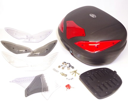 ※人気商品につきメーカー欠品時には入荷までに数週間以上納期を要する場合がございます。ワールドウォーク CB400SF(NC39 NC42)用リアキャリア×1個。※純正グラブバーがついている車両に適合致します。フォーカラーレンズ汎用リアボックス 43リットル×1個。取り付けに必要な台座・ネジ類が付いたフルセット。更にセット販売だけの限定特典 リアボックスインナーを付属します。リアキャリア 最大積載量:3Kg。リアボックス容量:43リットル。大きさ 縦:32cm、横:55cm、奥行き:40cm。【ご注意】※2014年マイナーチェンジ後のグラブバーが左右にわかれているモデルには装着できません。