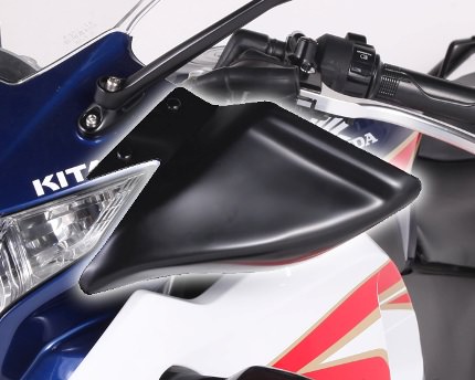 手に受ける走行風を軽減させるナックルカバーです。車両のカウル形状に合わせた専用設計。ABS樹脂製ブラック塗装仕上げ左右1セット両面テープ、ナイロンリベット付属※装着にはカウルの穴空け加工が必要です。