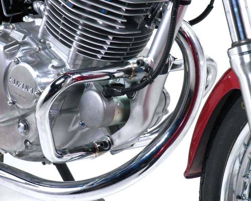 万が一の転倒を保護し、エンジンの損傷を軽減させるエンジンガードパイプです。スチール製クロームメッキ仕上げパイプ径:Φ25