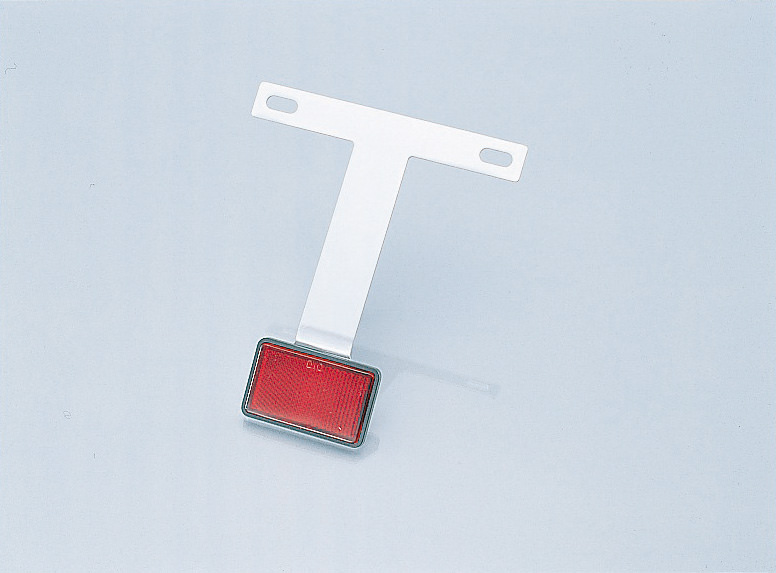 リヤフェンダーやフェンダーレスキットの装着や、テールランプの交換等の際に必要となるリフレクター(後部反射器)を、ナンバープレート取付ボルトを利用して、ナンバープレート下部にマウントするためのキット。(リフレクターを装備していない車両は、公道走行出来ません。)アルミ製ミニバイク・大型車どちらの大きさのナンバープレートにも使用できます。