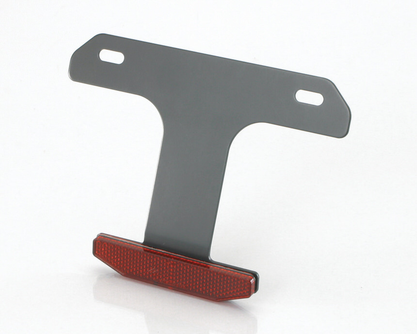 リヤフェンダーやフェンダーレスキットの装着や、テールランプの交換等の際に必要となるリフレクター(後部反射器)を、ナンバープレート取付ボルトを利用して、ナンバープレート下部にマウントするためのキット。(リフレクターを装備していない車両は、公道走行出来ません。)アルミ製