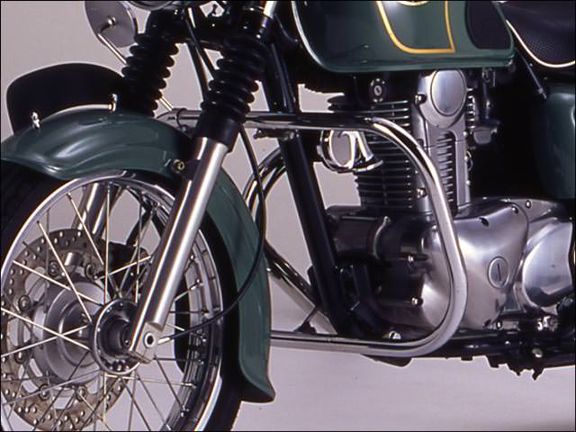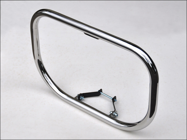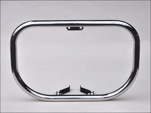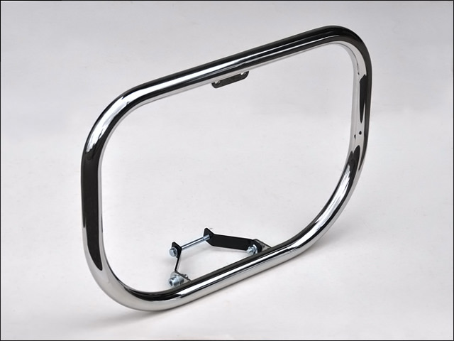 プロテクション効果に加えてデザインも引き立たせるラウンドフォルムのバンパー。幅600mm、高さ400mmのステンレス製バフ仕上げ。パイプ径をΦ31.8mm(1-1/4インチ)とすることで、ハーレーなどのエンジンガード用アクセサリーを流用する事が可能。様々なアレンジを楽しむ事が出来ます。取り付けに必要なステーやエンジンハンガーボルトも付属します。