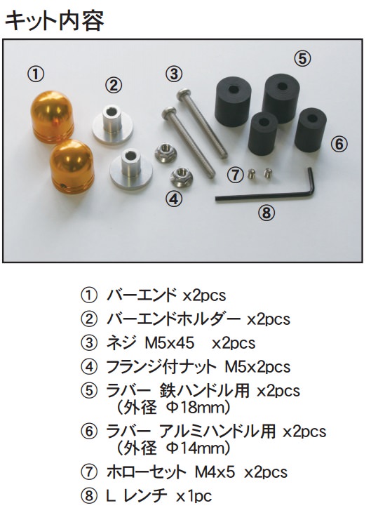※商品画像中本品はブラックになります。バーエンド端から取付ネジヘッドの露出を排除した新しいデザインバーエンド
