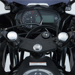 ハンドル周りをメカニカルに演出するデザインフォークキャップ。YAMAHA製、他ビレットアイテムと連動したデザイン。他ビレットアイテムと組み合わせることで個性を演出。3箇所からセットスクリューで固定。