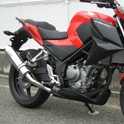 ※CBR250R 14年以降モデルとの共通仕様となっております。仕様:ステンレスパイプ・ステンレスサイレンサー(ラウンドタイプ)。近接排気音値:88db、加速走行騒音:78db。オイル交換・オイルフィルター交換対応。JMCA認証。平成22年改訂音量規制値クリア。ベンチテストにより徹底的に性能をチェック、CB250Fの特性をより活かすべく開発しました。アクセルレスポンスの改善、中低速域のトルクフィーリングを改善することで繋がりをよりスムーズに。センターパイプ全部にΦ42.7→Φ50テーパーパイプを採用することにより、ストレスのない吹き上がりを実現。センターパイプ・サイレンサー内部構造はCB250F/新型CBR250R用に完全専用設計、前モデルからの流用パーツは一切ないこだわりの仕様で、よりスポーティーなスタイルにマフラーをレイアウト、スタイリッシュな雰囲気を演出しています。各種サイレンサーから放たれる音質はシングルらしさと共にマイルドな心地良い音質に仕上げています。スリップオンマフラー取付に必要なジョイントガスケットを付属しております。