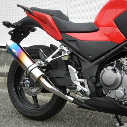 ※CBR250R 14年以降モデルとの共通仕様となっております。仕様:ステンレスパイプ・チタン焼き色サイレンサー(ラウンドタイプ)。近接排気音値:88db、加速走行騒音:78db。オイル交換・オイルフィルター交換対応。JMCA認証。平成22年改訂音量規制値クリア。ベンチテストにより徹底的に性能をチェック、CB250Fの特性をより活かすべく開発しました。アクセルレスポンスの改善、中低速域のトルクフィーリングを改善することで繋がりをよりスムーズに。センターパイプ全部にΦ42.7→Φ50テーパーパイプを採用することにより、ストレスのない吹き上がりを実現。センターパイプ・サイレンサー内部構造はCB250F/新型CBR250R用に完全専用設計、前モデルからの流用パーツは一切ないこだわりの仕様で、よりスポーティーなスタイルにマフラーをレイアウト、スタイリッシュな雰囲気を演出しています。各種サイレンサーから放たれる音質はシングルらしさと共にマイルドな心地良い音質に仕上げています。スリップオンマフラー取付に必要なジョイントガスケットを付属しております。