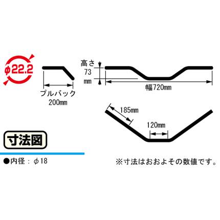 ライディングポジション、スタイル、イメージ等、ハンドルは重要なパーツ。FTR223・TW200・VANVAN200にはノーマルケーブルで装着可能です。スチール製クロームメッキ仕上げ全幅×全高×プルバック:720×73×200mm