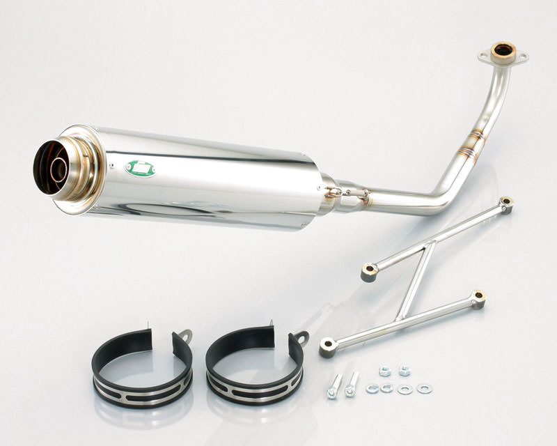 跳ね上がったサイレンサーが特徴のスポーツマフラー。排気効率を優先し、中速域から高速域にかけて、パワー、トルクが向上します。近接排気音:88dbJMCA認定番号:00642104サイレンサー:ステンレス製エキゾーストパイプ:ステンレス製※ノーマルファンダクト使用不可※装着には別途マフラーガスケットが必要です。オプションパーツマフラーガスケット(XY-17)963-0000017 450(本体価格)