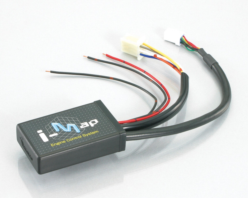 燃料噴射量を補正するFIコントローラーです。キタコ製パーツの組み合わせに対応する複数の最適マップをインストール済みで、ユーザーはI-MAPを取り付けた後、スイッチの設定でマップを選択します。(マップ数は車種により異なります。)また、キタコ製以外のパーツの装着やユーザーの好みに対応させるため、ユーザーオリジナルマップの作成も可能です。オリジナルマップの作成は別途PCインターフェイスケーブル(763-0500900)とwindows搭載のパソコンが必要です。※装着には配線加工が必要です。