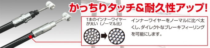 インナーワイヤーを太くし、ノーマルケーブルと比べよりダイレクトな「かっちり」としたフィーリングを実現。アウター長:1765mm