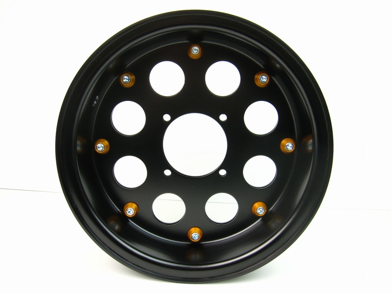 ※イメージのローゼットは別販売です。【特徴】モンキー10インチアルミ製ホイールです。スタイリッシュなブラックアルマイトカラーです。8ホールデザインの人気ホイールです。【仕様】ホイール 10インチ3.25J・・・1ケ【センター調整スペーサー(別売り)】モンキーアルミ製ホイールスペーサー5枚 NO0296(別売り)モンキースチール製ホイールスペーサー5枚 NO0373(別売り)【ホイール取り付けボルト(別売り)】モンキーホイール取り付け用ボルト・ワッシャー NO3179(別売り)