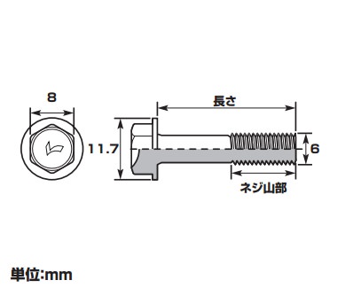 フランジ付 SH ボルト M6/P1.0 28mm(ネジ山部 25mm) KITACO(キタコ)