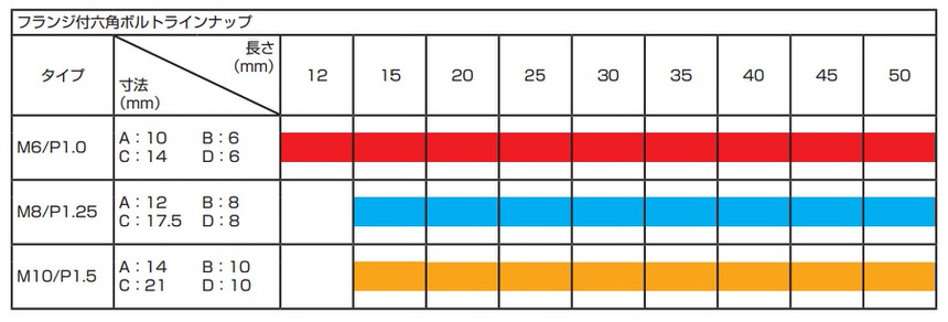 ※一般的なボルトに比べ強度が低めとなりますので一覧表に記載のトルク範囲内でご使用下さい。又、重荷重の掛かる箇所への使用はお止め下さい。