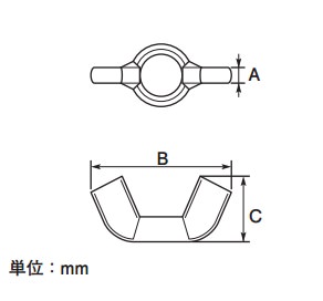 ※製造ロットの違いにより表記寸法と異なる場合があります。ご購入の際は、予め寸法のご確認をお願い致します。※蝶ボルト/ナットが緩まない程度に素手で締付け可能な箇所にご使用下さい。(参考:通常、素手で締付けた場合、締付けトルクは 3.0N・m 以下になります。)プライヤ等、工具を使用して蝶ボルト / ナットを締付けると、過大トルクとなり周辺パーツを破損させる恐れがあります。