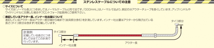 ※アウターカラー:ステンメッシュインナーケーブル高密度の複撚り(7×7=49本)に仕上げ、高張力加工、表面特殊加工を施した為、表面の凹凸が少なく、テフロンチューブ内蔵により、摩擦を減少させ、非常に滑らかなクラッチ、スロットルワークを実現しています。アウター長:920mm/インナー吐出量105mm(150mmL)アウター長:1070mm/インナー吐出量105mm(300mmL)