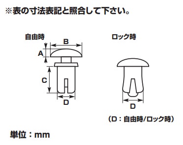 ※入数:3パネル等を取り付けられる樹脂リベット。脚部が押し広げられ構成パネルを固定します。※再使用不可適合板厚:3.5 ~ 4.5mm /A:1.8・B:8・C:6・D:4/5.4(mm)