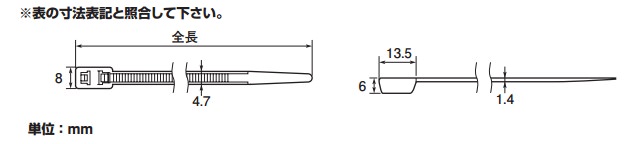 ※入数:2平行する二系統のハーネス束を8の字形状に束ねることが可能。耐候タイプ使用温度範囲:-40~105度最大結束径:Φ50×2組全長:395mm×4.7