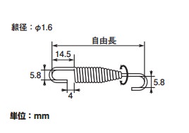 ※入数:1スイベルフックタイプによりスプリングに掛かる負荷を軽減し、ステンレス製で長期使用による錆の発生を抑えます。※推奨取付長の範囲外での使用は脱落や破損の恐れがあります。自由長:85 ± 1.0mm推奨取付長:89~94mm