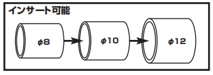 サスペンション用ブッシュのカラーとしても使用可能。Φ 8/10 →Φ 10/12 →Φ 12/15 へインサート出来ます。