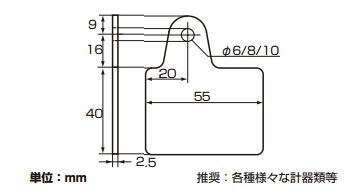 各種デジタルメーターや ETC アンテナ等の設置に役立つ汎用マルチプレート。プレート固定はボルトやミラー等と共締めできるように豊富にラインナップ。アルミ材:A5052アルマイト仕上げ固定穴径Φ10サイズ:40×w55mm